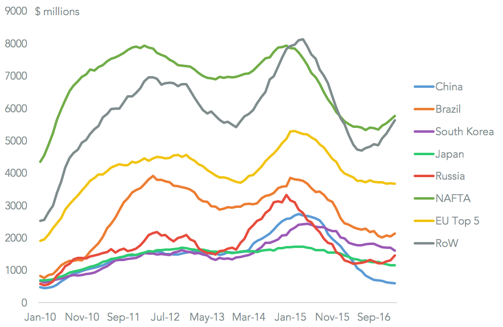 From a process perspective a report can take up to 270 days to deliver, with the President taking another 90 days to review the results and take action. Given the President’s recent comments regarding the process for NAFTA – as discussed in Panjiva research of April 19, and a desire expressed by Secretary Wilbur Ross to act “expeditiously” a result can be expected sooner than that.