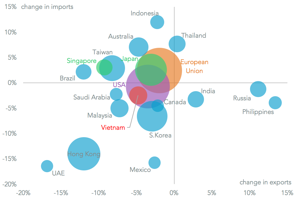 While trade with the U.S. is a major issue for the Chinese government, it is by far the only one and possibly not the most important. Panjiva data for Chinese imports and exports shows that the European Union is in fact the largest trade partner over the past 12 months to January 31. Imports from the EU fell by 2.0% in the same period vs. a year earlier, while those from the U.S. fell 0.7%. China is also trying to close the RCEP trade deal that will address a market 2.2 times the size of its total trade with the U.S.