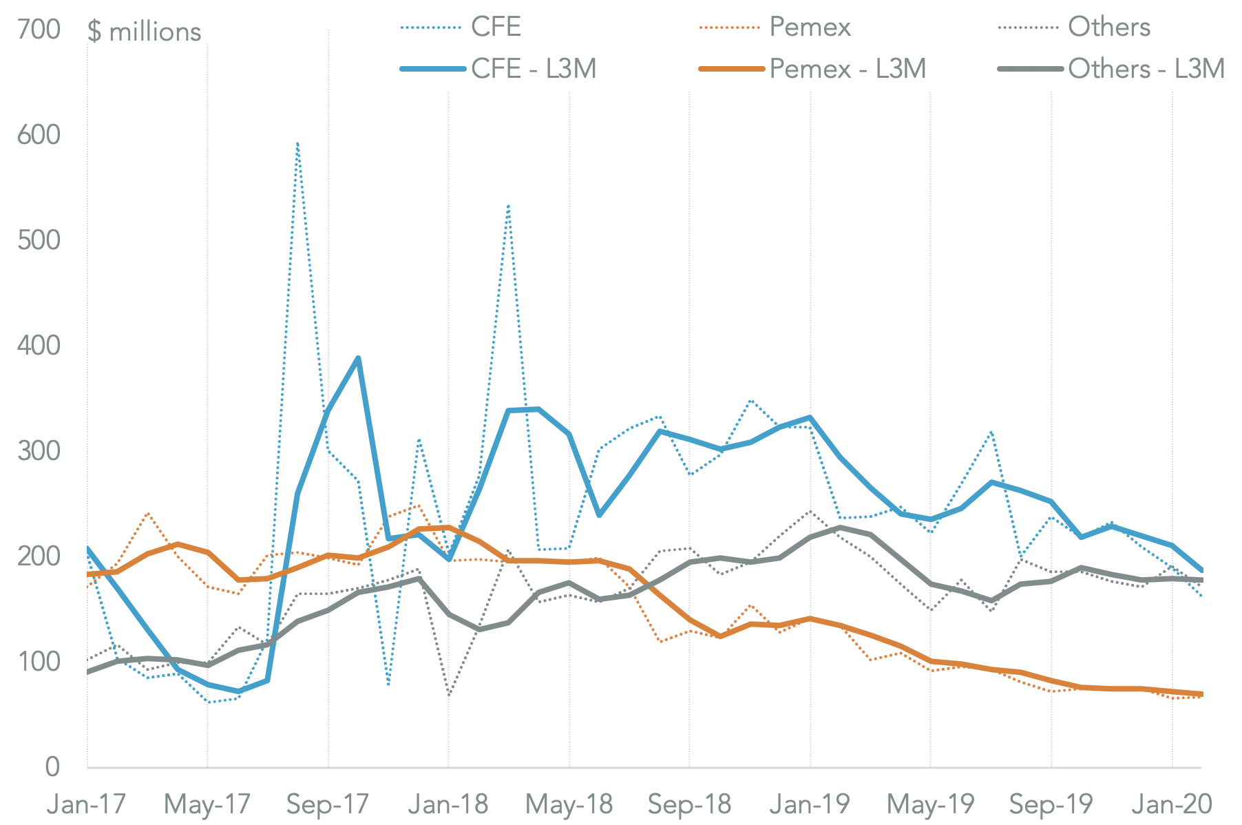Mexico’s major natural gas importers will need to increasingly compete with buyers in China for U.S. gas supplies, especially as the Chinese government seeks to fulfill the terms of the phase 1 trade deal. Indeed, Panjiva’s data shows China’s imports from the U.S. in January were zero.