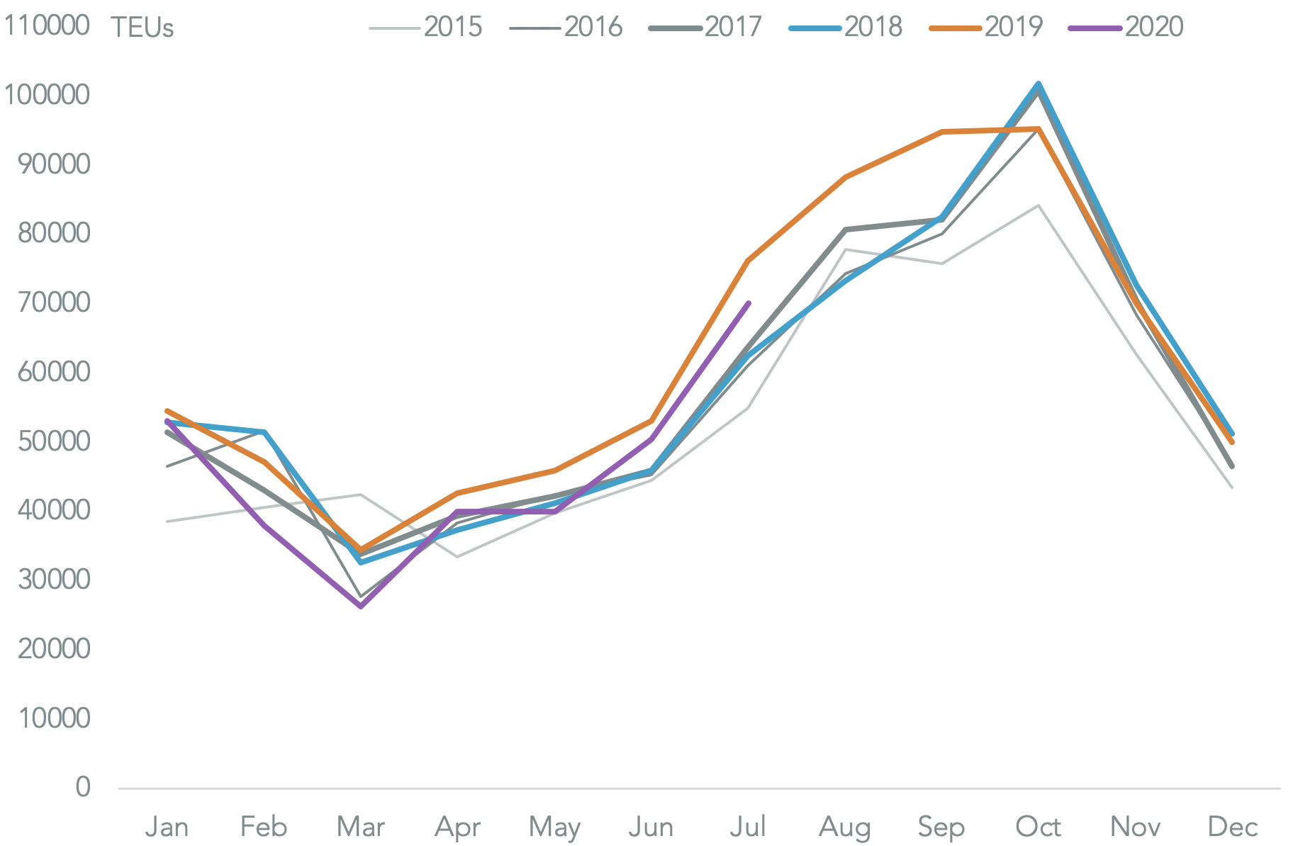 The peak season acceleration has also only been inline with the five year average with July shipments up by 38.8% versus June. That would suggest a COVID-19 related catch-up isn’t occurring.