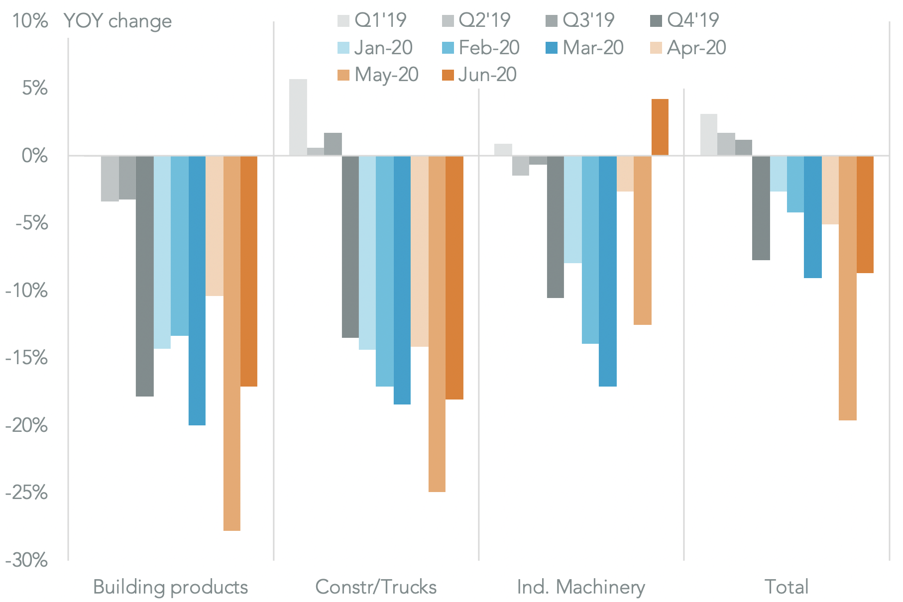 The second stage has been the destruction of demand both from consumers as well as non-manufacturing industrial demand, for example in capital equipment where investments have been suspended to protect cash flows. The worst performances have been in May with signs of recovery at the start of June.
