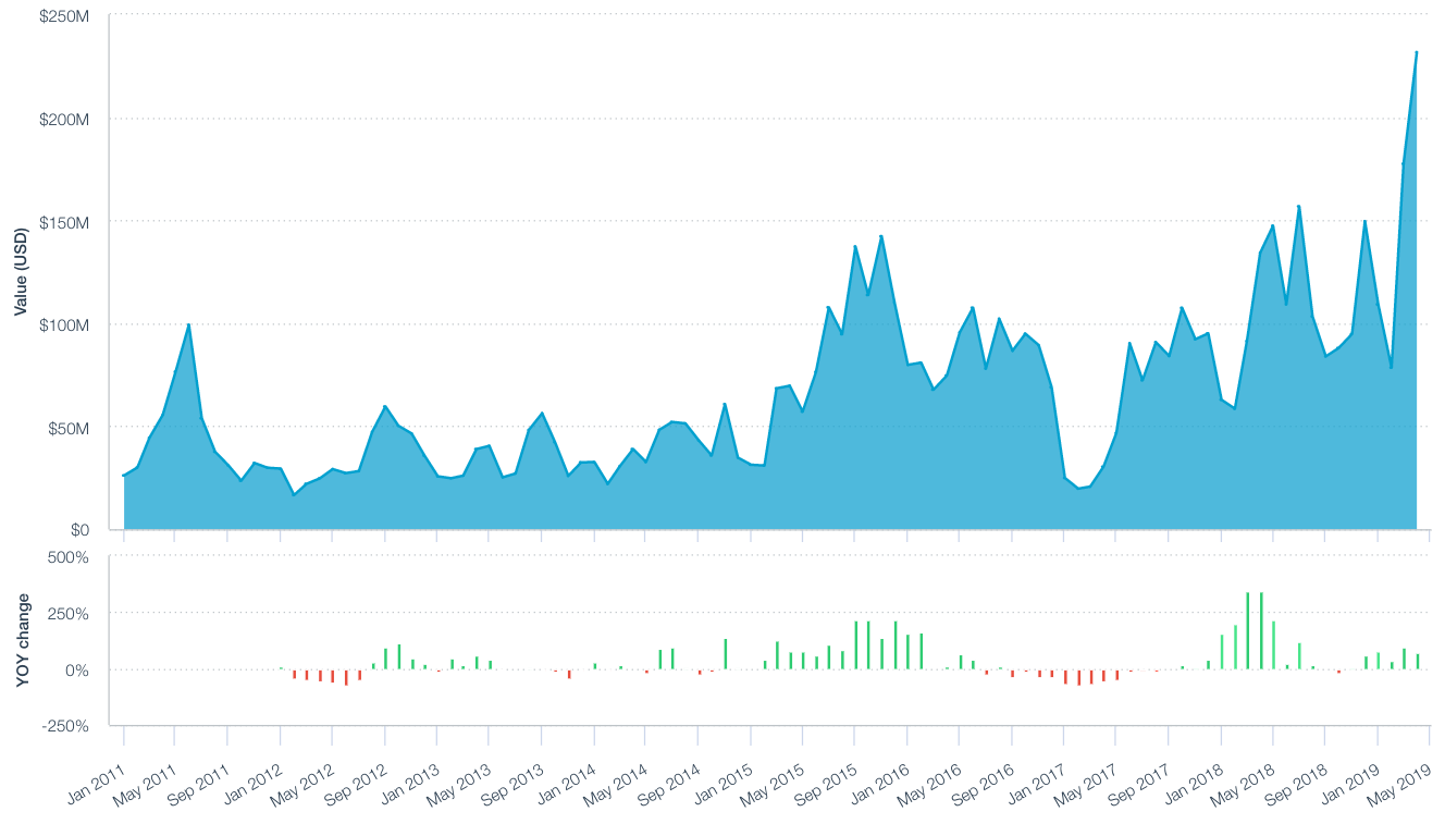 Trade relations between the U.S. and Mexico have been improving following the resolution of a migration-related tariff spat and progress toward passing the U.S.-Mexico-Canada Agreement, as outlined in Panjiva’s research of Jun. 8.